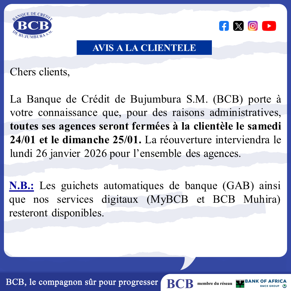 Fermeture des agences pour des raisons administratives, le samedi 24 et le dimanche 25 janvier 2026.